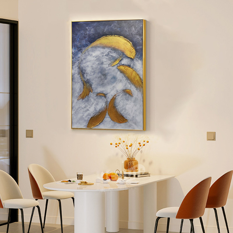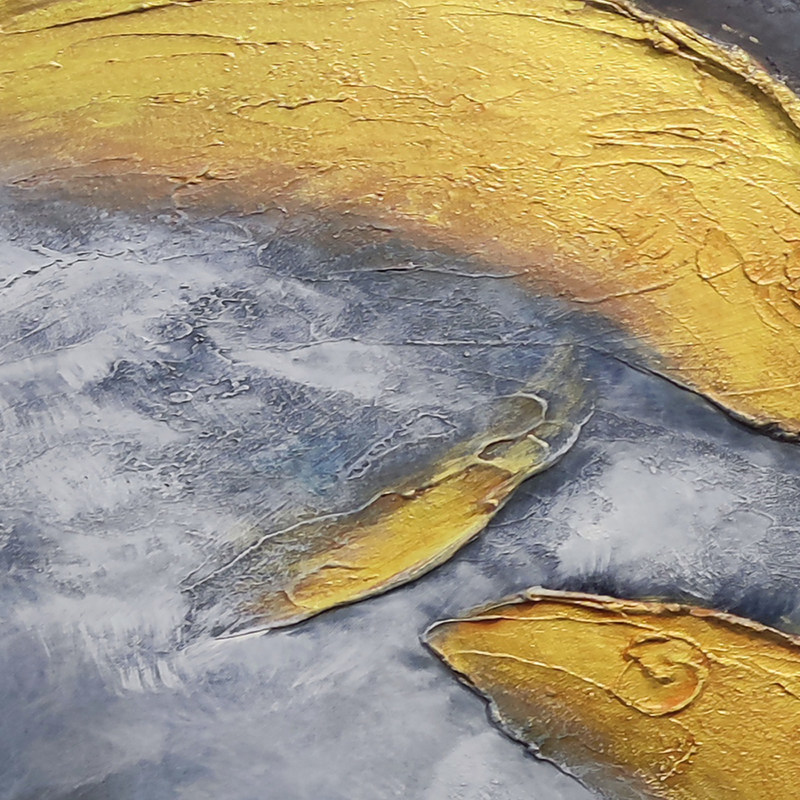 Pittura ad olio Medio e 6 colori Metodo di stampa utilizzato per il pesce rosso dipinto a mano Arte in foglio d'oro Arte del soggiorno 3