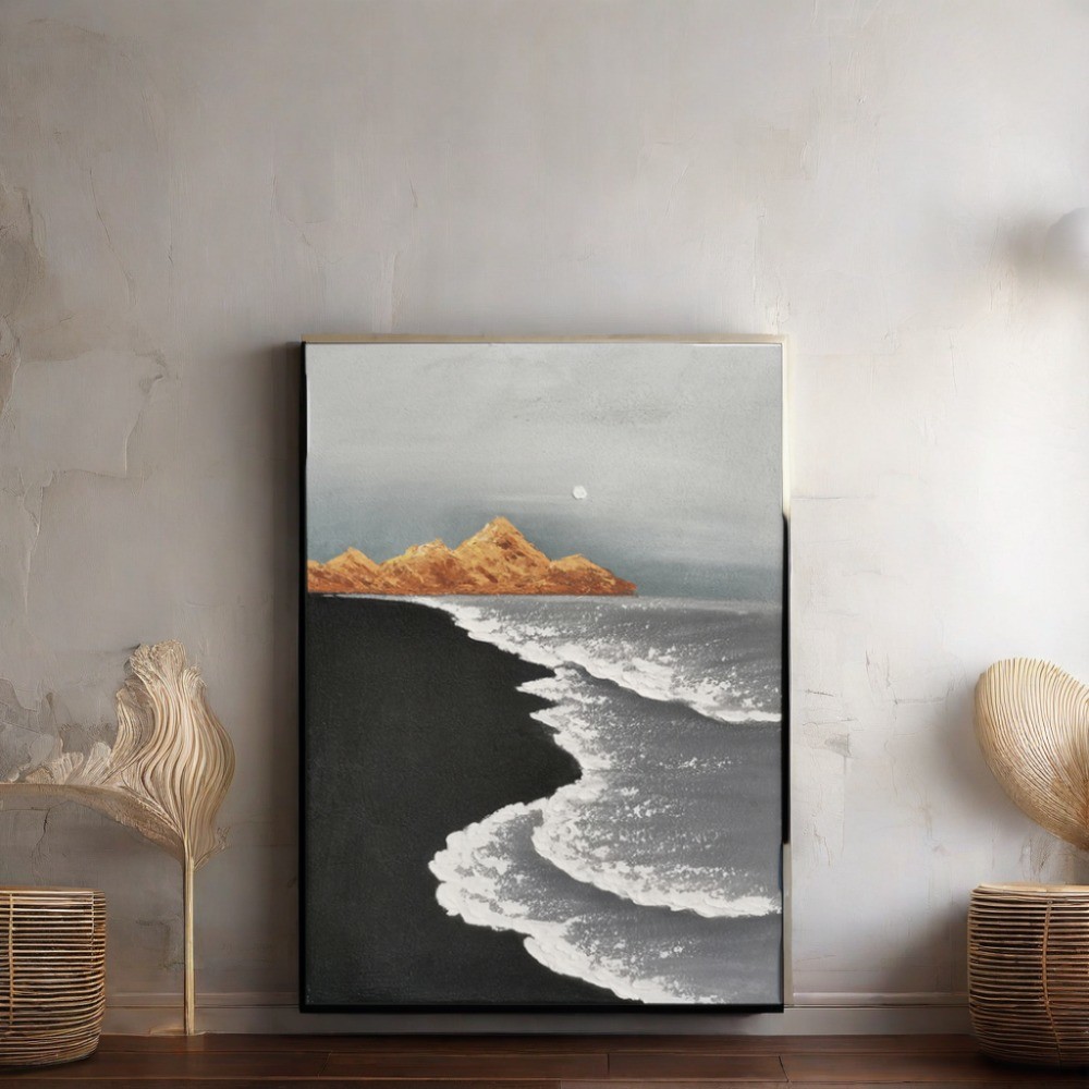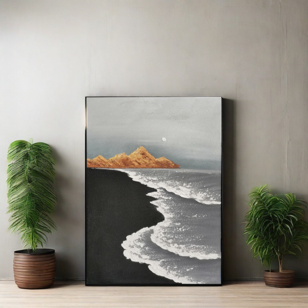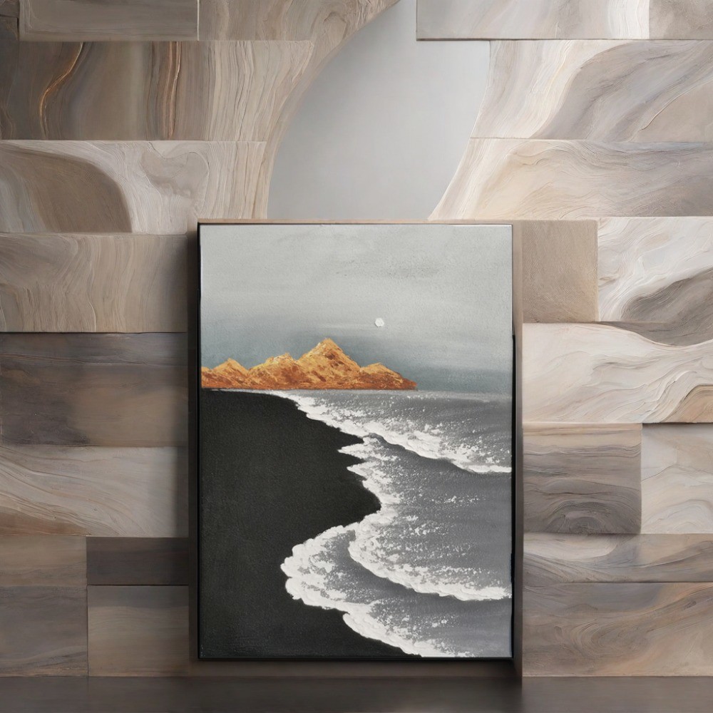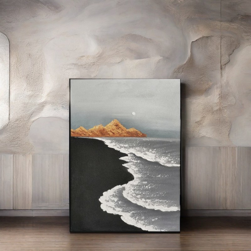 Pittura a mano Modern Wall Art 3d Tessitura onde di mare Sabbia spiaggia Rilievo astratto Pittura su tela Materiali per la decorazione del soggiorno 0